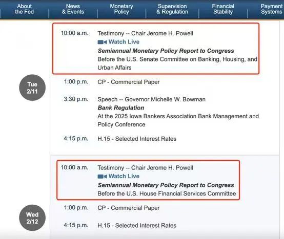 美联储于当地时间2月6日宣布,鲍威尔将于2月11日上午10点在美国参议院银行委员会,以及12日上午10点在美国众议院金融服务委员会,就半年度货币政策发表证词。市场密切关注鲍威尔对于未来降息立场的表态,这或将对市场产生深远影响。
