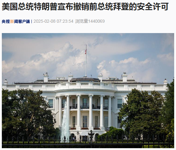 据央视新闻2025年2月8日报道,当地时间2月7日,美国总统特朗普在其社交媒体上发布声明,宣布撤销前任总统拜登的安全许可,并终止其接收每日国家情报简报的权利。特朗普指出,拜登曾在2021年下令情报机构停止向其通报国家安全信息,而这是传统上“前总统应享有的待遇”。特朗普进一步表示,他认为拜登已无需继续接触机密资料。