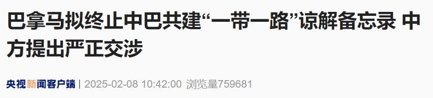 2025年2月7日,中国外交部就巴拿马拟终止中巴共建“一带一路”谅解备忘录向巴方提出严正交涉,强调中巴合作成果丰硕,呼吁巴方从双边关系大局和两国人民长远利益出发作出正确决定。