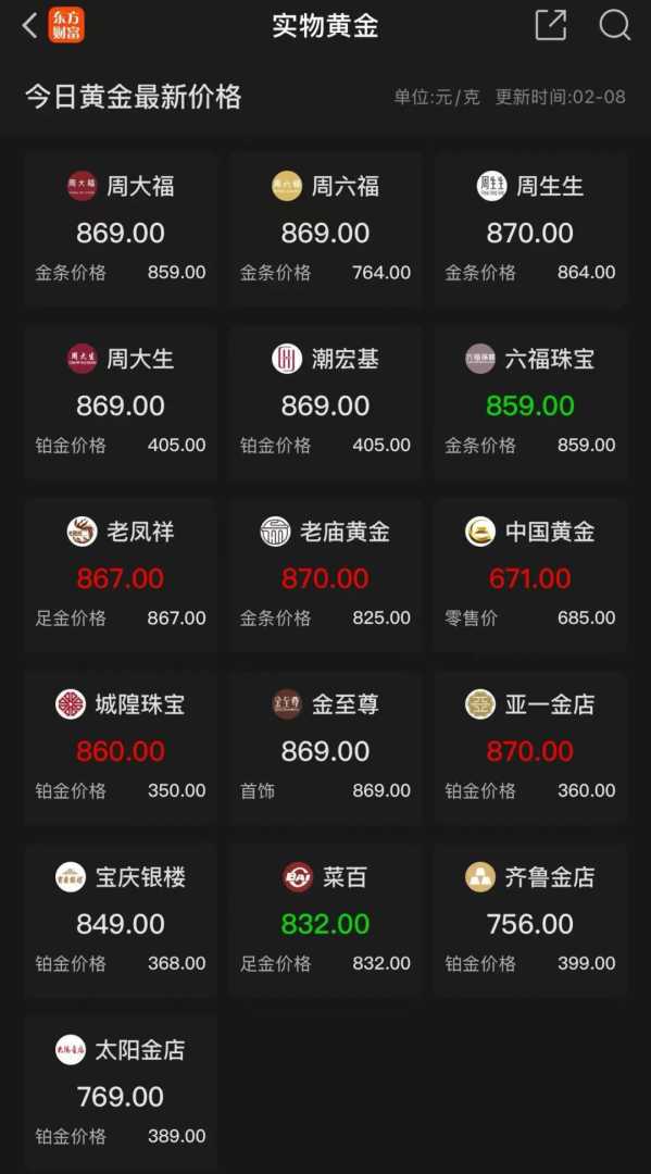 此番金价的大幅上涨,直接带动了黄金饰品价格的飙升,部分地区的金价已逼近870元/克,引发了市场的广泛关注与讨论。面对如此高涨的金价,消费者的观望情绪日益浓厚,小克重黄金饰品因其相对较低的总价和灵活的购买选择,逐渐成为了市场的‘新宠’。