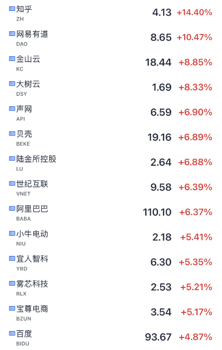 大家好啊,今晚继续关注一下海外市场的表现,一个好消息是——中概股又大涨了!