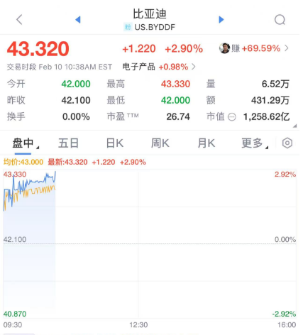 OTC粉单市场上,比亚迪股价涨近3%!在2月10日晚间的智能化战略发布会上,比亚迪董事长兼总裁王传福宣布,比亚迪全系车型搭载天神之眼高阶智驾,10万级以上全系标配,10万元以下多数搭载。