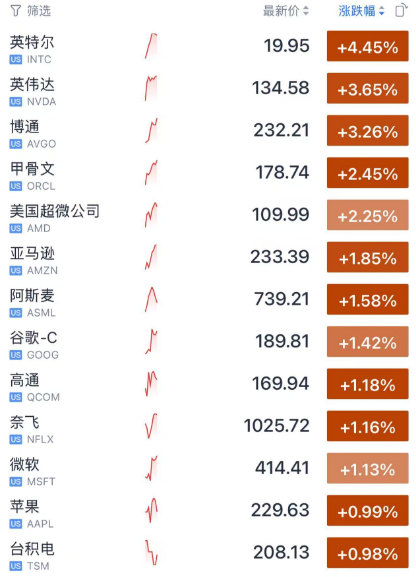 明星科技股普遍上涨,英伟达、博通涨超3%。市场情绪似乎在1月底科技股因对DeepSeek的担忧而抛售后有所改善。