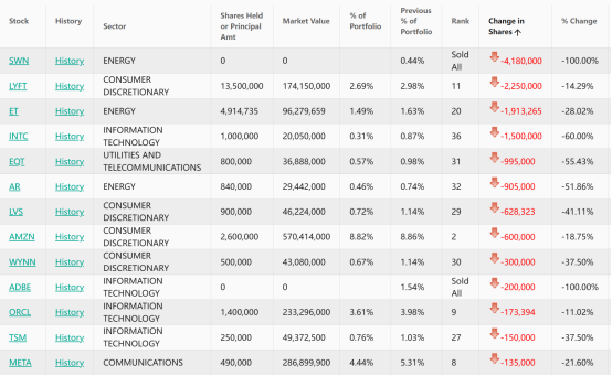 在增持中概股的同时,Appaloosa去年四季度开始减持美国科技巨头的持仓,包括Meta、亚马逊、英特尔等。