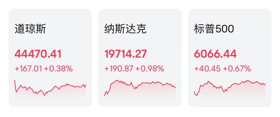美东时间2月10日,在特朗普征收关税的压力之下,美股三大指数依旧收涨。截至收盘,道指涨0.38%,报44470.41点;标普500指数涨0.67%,报6066.44点;纳指涨0.98%,报19714.27点。