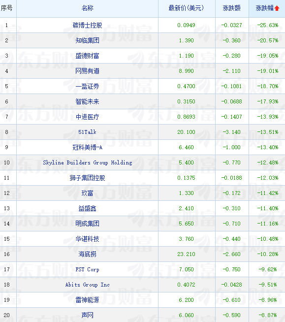 热门中概股多数下跌,纳斯达克中国金龙指数收跌1.66%。