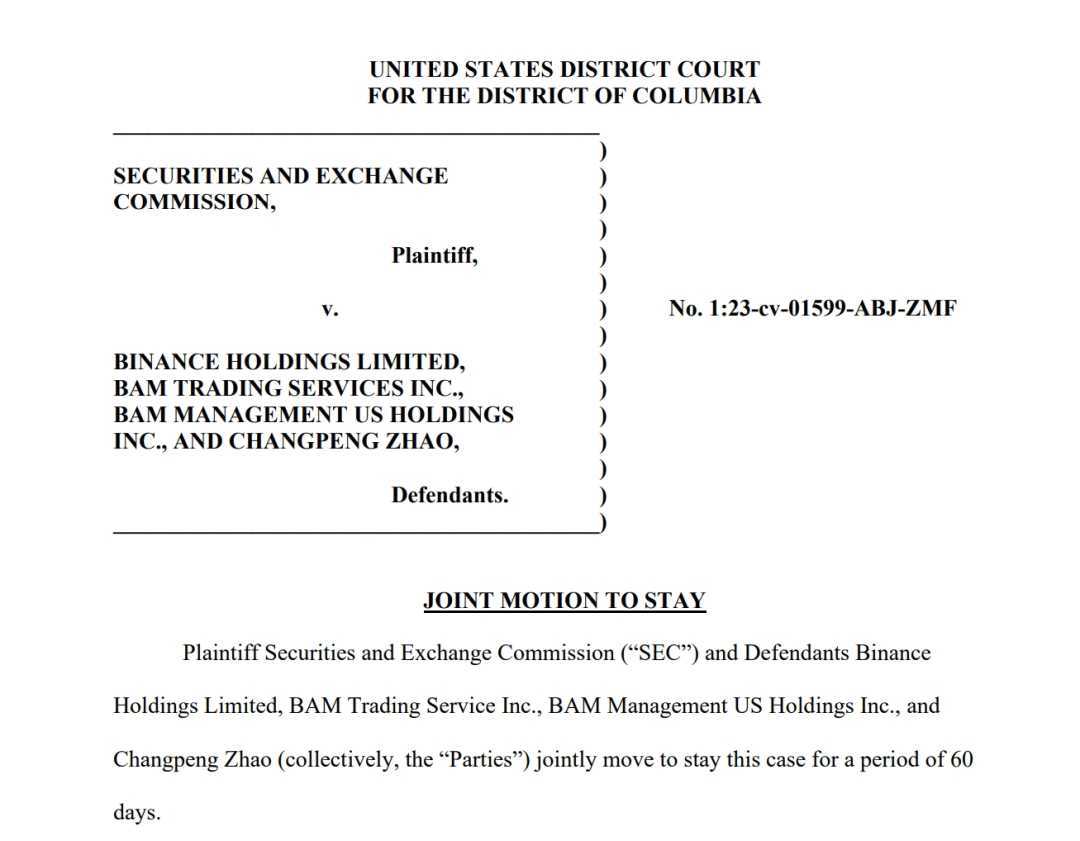 SEC与币安暂停诉讼60天,观察加密货币工作组影响