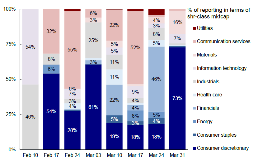 从板块披露进展来看,信息技术、工业等板块的公司将于2月中旬率先发布年报,通信服务、可选消费等板块的公司则多数在2月下旬开始披露,而金融板块的公司则集中在3月下旬。