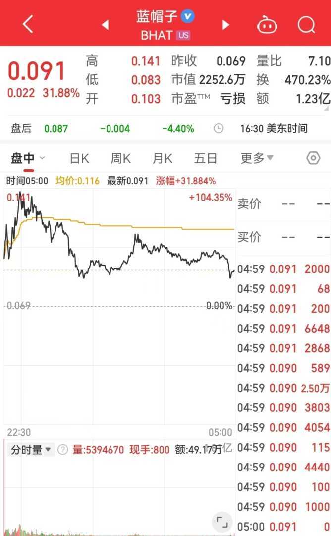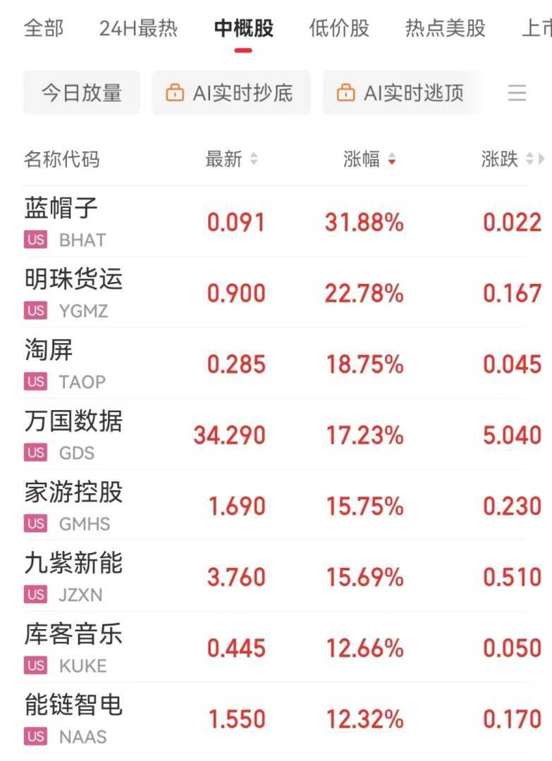 奈飞跌近2%,微软、英伟达、谷歌、亚马逊小幅下跌;英特尔涨超6%,Meta小幅上涨。热门中概股多数下跌,纳斯达克中国金龙指数收跌1.66%。蔚来、小鹏汽车跌近7%,理想汽车、百度跌近5%,哔哩哔哩、携程跌近4%,京东跌逾3%,阿里巴巴涨1.3%。中概股蓝帽子盘中一度大涨超100%,收盘涨31.88%。