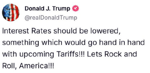 然而,美国总统唐纳德·特朗普周三早些时候在Truth Social平台发文,称利率应当下调。特朗普表示:“利率应该降低,这与即将实施的关税相辅相成!让我们摇滚吧,美国!”