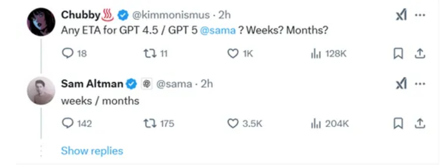 奥尔特曼直接回应,是按照周和月来发布的。估计很快就会来了。