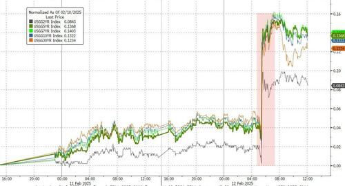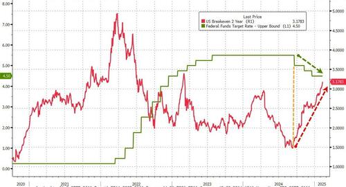 事实上,相比于已经出炉的1月数据,更令人担心的还是特朗普关税加征后,接下来美国通胀的走向。有着“新美联储通讯社”之称的著名记者Nick Timiraos在本周文章中就曾提到,虽然特朗普在2018年和2019年提高关税的举措几乎没有反映在通胀指标中,但目前的关税范围更广,将影响更多的消费品,而这些产品在价格篮子中占据更大份额。知名财经博客网站Zerohedge则表示,接下来一个很有意思的观察点也正再度出现:美联储是否还会嘴硬地认为通胀的连涨回升只是暂时的?