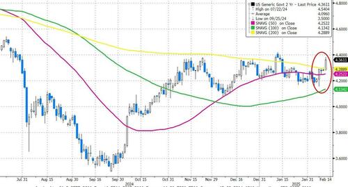 摩根士丹利财富管理公司的Ellen Zentner表示,“美联储一直在等待通胀再次走低的明确迹象,而今天早上他们得到的却是相反的结果。在这种情况发生变化之前,市场将不得不对进一步降息保持耐心。”从周三金融市场的走势看,尽管美股在开盘大跌后逐渐收复了当天的大部分跌幅,纳指甚至依然收涨,但美债市场显然没有那么好运,美债价格遭遇了开年来最惨烈的重创,10年期美国国债收益率创下12月18日以来的最大涨幅。截止纽约时段尾盘,美债收益率集体上涨,2年期美债收益率涨7.36个基点报4.3527%,5年期美债收益率涨9.95个基点报4.4676%,10年期美债收益率涨8.76个基点报4.6228%,30年期美债收益率涨8.61个基点报4.8331%。