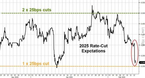 盈透证券首席策略师Steve Sosnick表示,这一数字很难让人接受。当前股市的一个特点似乎是:每次下跌都是买入机会。下跌幅度越大,机会越大,但债券市场没有这样的支撑。债券市场显然没有股票可以对冲温和通货膨胀的支撑。Miller Tabak首席市场策略师Matt Maley指出,周三的CPI、上周的非农就业报告以及对关税的担忧,均推动10年期国债收益率回升至了去年9月以来的趋势线以上。Maley表示,“这并不意味着收益率很快就会超过5%,也不意味着收益率不会在今年晚些时候逆转。然而,这应该引起人们的担忧,即美联储将比华尔街最近所认为的要等待更长时间才能降低短期利率,同时也引发了人们的担忧,即美国财长贝森特降低长期美债收益率的目标,也将需要更长时间才能实现。”对于Northlight Asset Management首席投资官Chris Zaccarelli来说,虽然现在预测官员们会很快开始加息还为时过早,但市场将开始认真考虑美联储的下一步举措——即使是要到2025年底或2026年初,也更可能是加息而不是降息。美国银行经济学家Aditya Bhave表示,最新数据增强了他的信心,降息周期已经结束。“虽然加息的可能性仍然不大,但现在看来已经不那么不可想象了。”从利率期货市场的定价来看,目前交易员预计今年首次降息——也是定价反馈出的唯一一次降息,将推迟至12月进行。