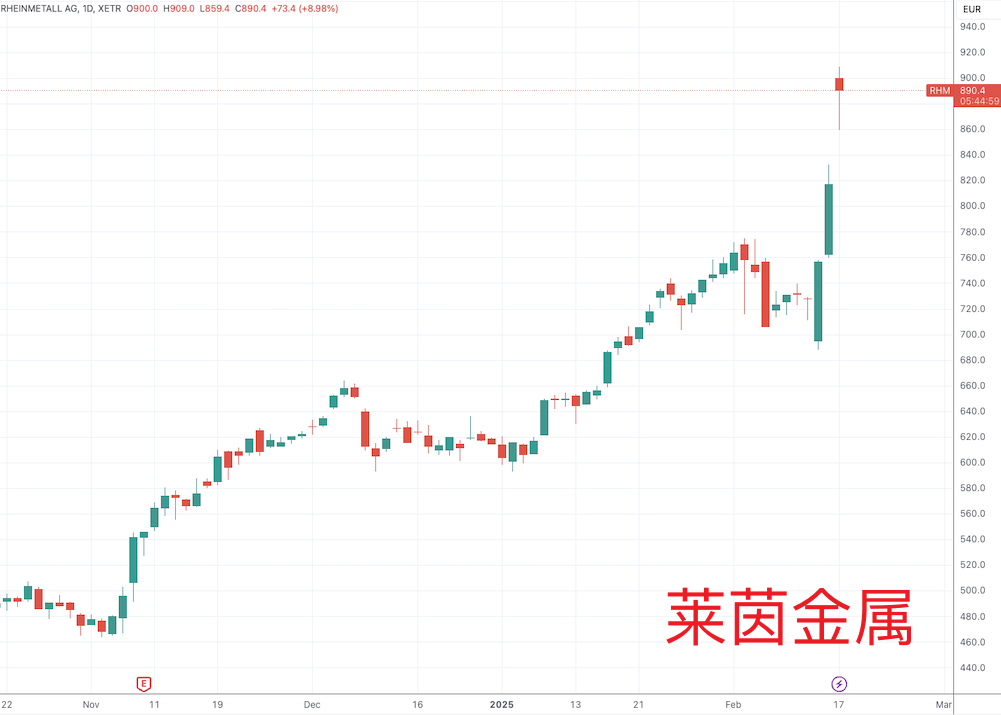 受这条消息影响,欧洲国债收益率普遍上行,交易员开始考量欧元区增发国债购买军火的前景。欧洲军工股也闻讯大涨,装甲车和自行火炮制造商莱茵金属(Rheinmetall AG)涨近9%,军用飞机和武器制造商萨博(Saab AB)涨超11%、BAE系统涨超6%。