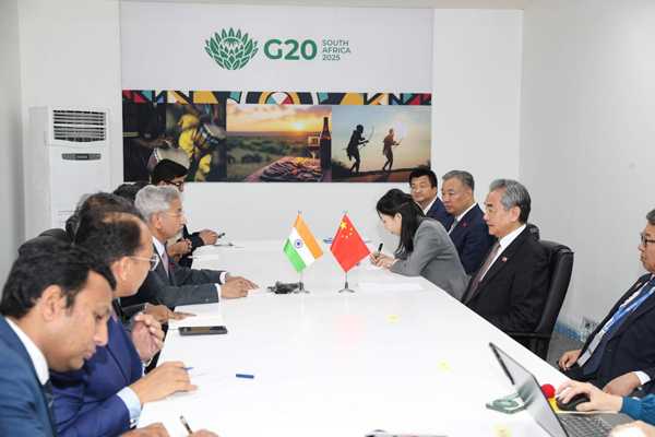 中共中央政治局委员、外交部长王毅与印度外长苏杰生在约翰内斯堡会见,双方一致认同应建立相互信任、支持和成就的关系,加快恢复合作机制,增进人文交流,共同维护边境地区的和平与安宁。