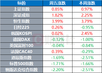美股周五收跌,纳指、标普500指数及道指均下跌。原油期货市场亦表现不佳,WTI及布伦特原油期货均收跌。此外,据国际铜研究组织数据,去年12月全球精炼铜市场出现2.2万吨缺口。
