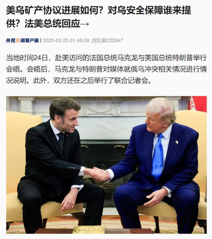 特朗普表示,愿在适当时候前往莫斯科,并可能在数周内结束俄乌冲突。马克龙对美强势参与表示欢迎,并表示欧洲准备以各种方式支持乌克兰,包括军事支持。