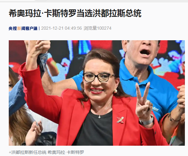洪都拉斯选举委员会于2021年12月20日宣布,希奥玛拉·卡斯特罗当选该国总统,任期四年。近日,卡斯特罗还公开表示,将保证2025年的总统选举平稳进行。