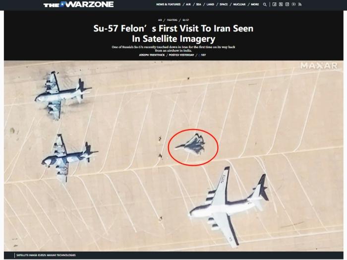 卫星图片清晰显示了苏-57在伊朗机场的停留情况。图/美国“战区”网站