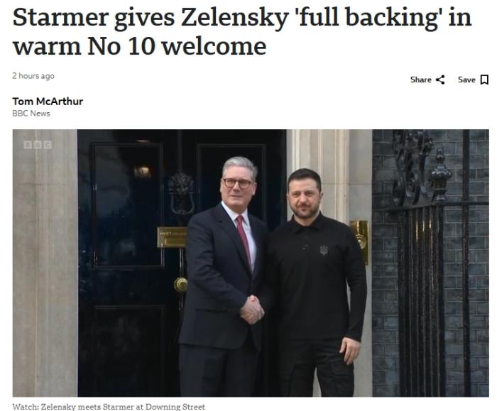 据报道,斯塔默对泽连斯基表示,“我们将与你和乌克兰站在一起,无论需要多长时间。”泽连斯基回应说,“我想感谢你们,感谢英国民众。”