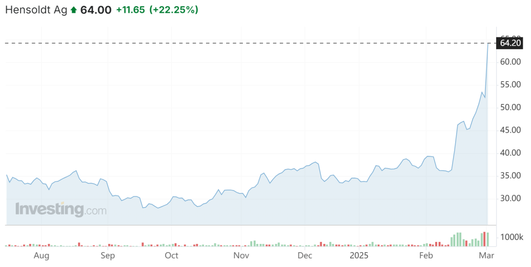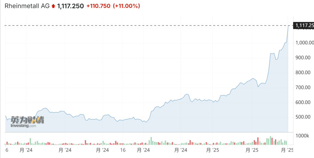 欧洲领导人同意为乌克兰起草和平计划后,德国军火制造商股票大幅走高。欧洲领导人同意增加国防开支,以应对安全威胁。