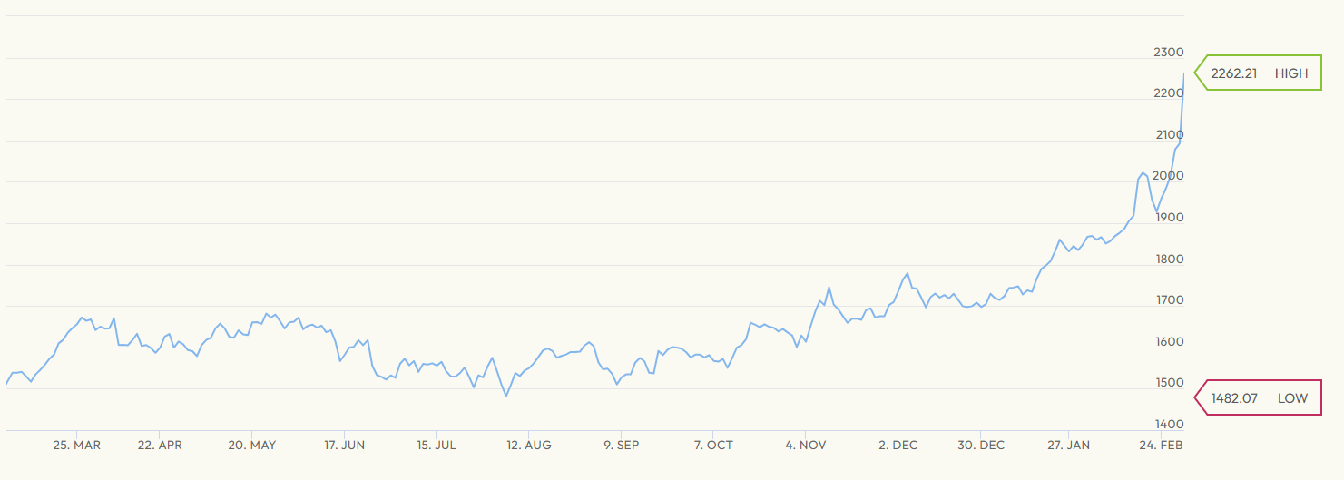 STOXX欧洲整体市场航空航天和国防指数日线图,来源:STOXX官网