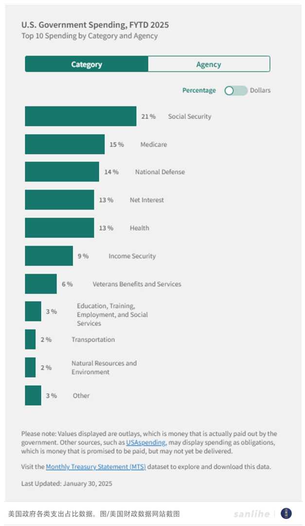 然而,削减财政赤字并非易事。社会保障、医疗保险、国防等支出占比高,且削减难度大。同时,政府债务的高利息也进一步推高了财政赤字。