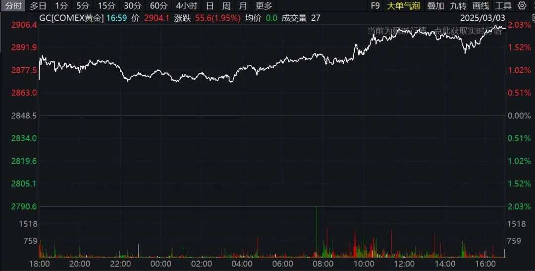 然而,国际金价却逆势大涨。COMEX黄金期货收涨1.95%,白银期货也收涨2.44%。