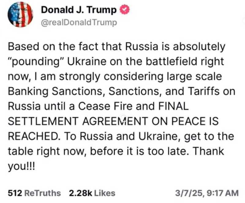 据央视新闻,当地时间3月7日,美国总统特朗普在社交媒体上发文表示,鉴于俄罗斯对乌克兰发起“猛烈的攻击”,他考虑对俄罗斯实施包括银行业在内的大规模制裁及关税制裁,以促成停火和最终和平协议。特朗普呼吁俄乌双方坐到谈判桌上。同时,乌克兰总统泽连斯基称,俄军再次对乌能源设施发起大规模袭击,包括敖德萨、波尔塔瓦等多个地区,已使用近70枚导弹和近200架无人机。此外,F-16战斗机和法国提供的幻影-2000战机已开始执行乌空域任务。