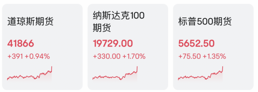 数据发布后,美股期货全线拉升,纳斯达克100指数期货大涨1.7%,道指数期货涨近1%,标普500指数期货涨1.35%。