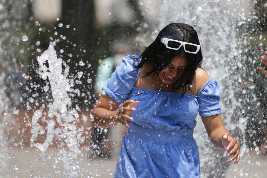 2024年5月15日,墨西哥首都墨西哥城市民戏水消暑。新华社发(弗朗西斯科·卡涅多摄)