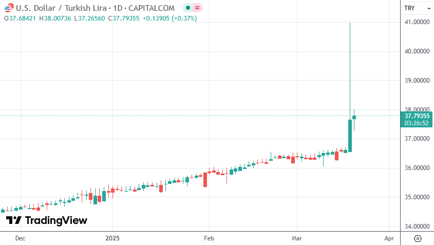 土耳其央行货币政策委员会宣布将隔夜贷款利率提高至46%,旨在应对通胀风险,维持金融市场稳定。此举导致土耳其里拉汇率波动,但日内资产已显示出企稳迹象。同时,伊斯坦布尔市长被拘留事件也引发市场动荡。
