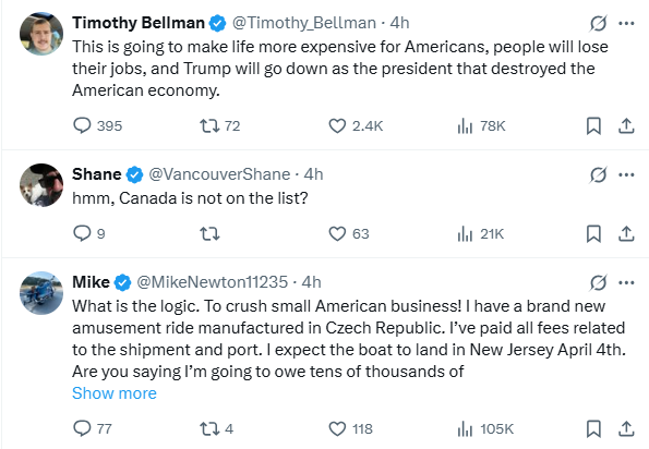 同时,白宫官方账号下众多美国用户反对关税,认为将导致生活成本激增、失业增加和小企业倒闭。