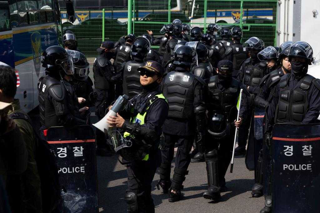 4月4日,警察在首尔总统官邸附近警戒。新华社发(全休相摄)