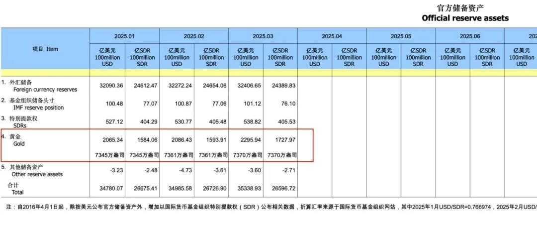 数据显示,3月末黄金储备报7370万盎司,较2月末增加9万盎司,这是央行连续第五个月增持黄金,彰显了对黄金价值的认可。