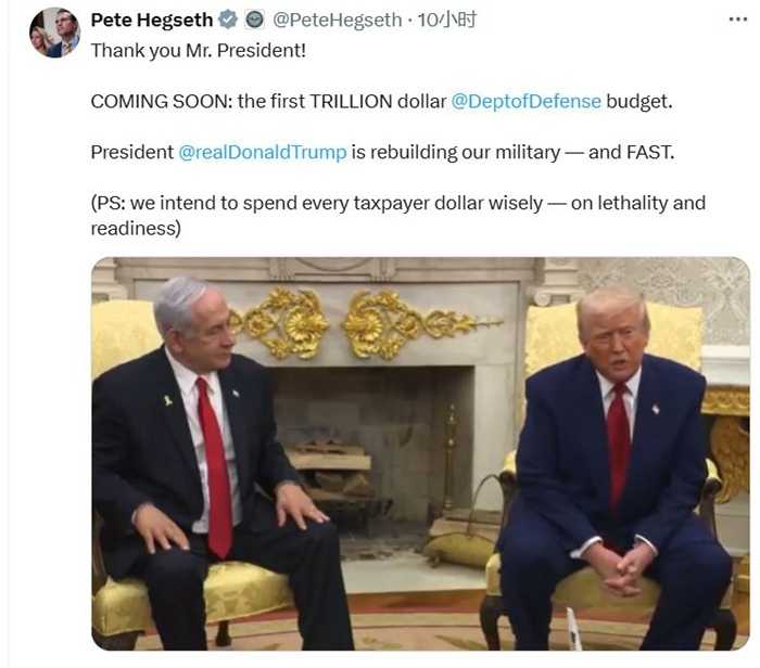 他声称全球存在众多“敌对势力”,因此美国必须加强军备,“我们必须保持强大。”赫格塞思随后在社交媒体上发文,对特朗普表示感谢,并证实了这一1万亿美元的国防部预算计划。值得注意的是,美国的2025财年尚未结束,新财年的预算预计要到5月底才会正式出台。