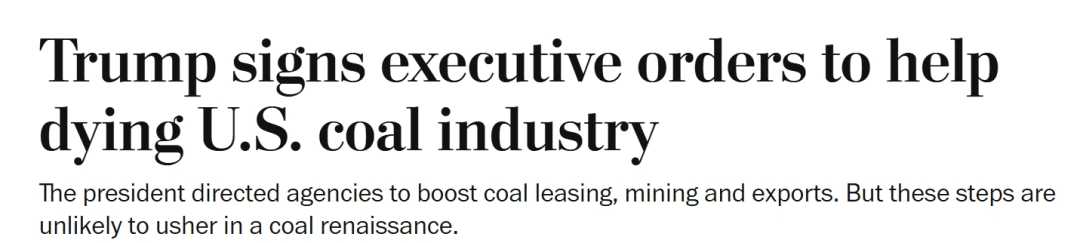 特朗普签署行政令意图重振美国煤炭业,分析师泼冷水