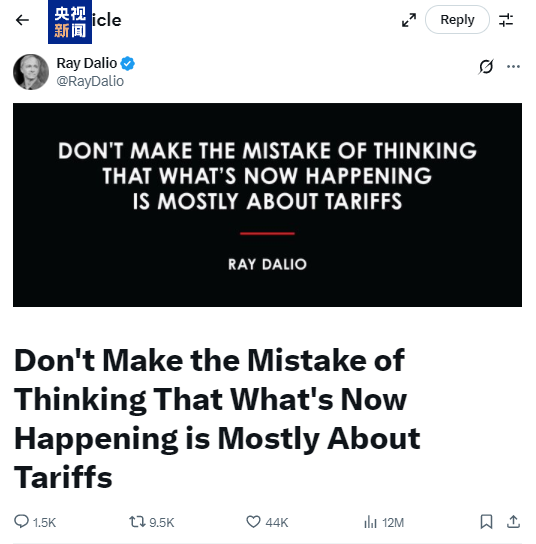 △达利欧最近发表文章《关税背后的深层危机》。