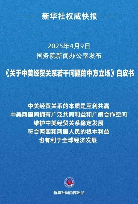 国务院新闻办公室9日发布《关于中美经贸关系若干问题的中方立场》白皮书,澄清中美经贸关系事实,明确中方对经贸摩擦的政策立场,强调互利共赢的重要性。