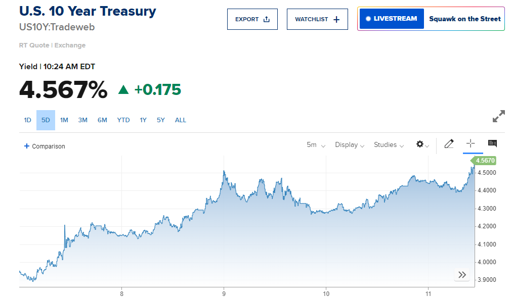 4月11日晚间,美国10年期国债收益率再度攀升至2月中旬以来最高水平,市场抛售压力持续加大。