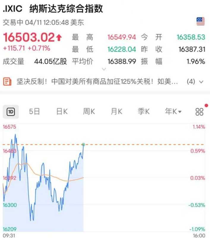 纳斯达克指数同样遭遇大幅波动,一度下跌超过1%,但目前已上涨0.71%。