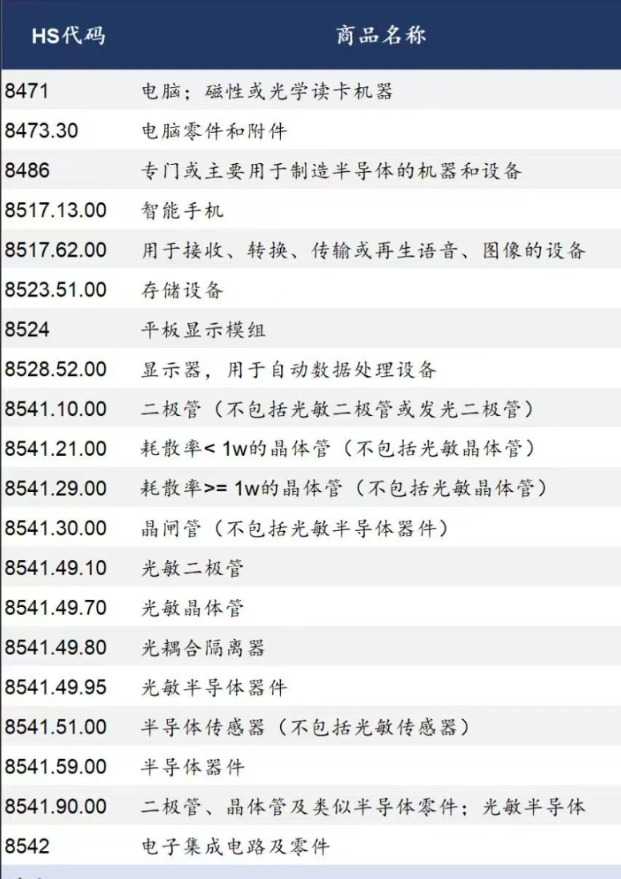 此外,制造半导体所需的设备同样被排除在关税之外。根据美国《协调关税税则》的分类号码,部分商品可获得“对等关税”豁免,包括电脑及其周边设备、半导体制造设备、通信设备、存储设备、显示模组、半导体器件与集成电路等。