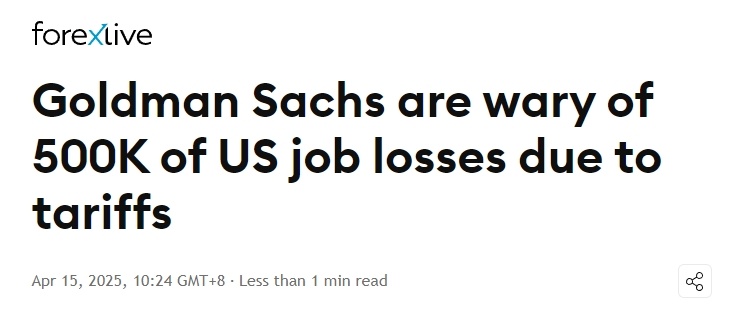 △财经网站forexlive报道:高盛担忧关税将导致美国流失50万个工作岗位