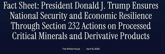 白宫指出,特朗普认为美国对外国关键矿产及其衍生产品的过度依赖将威胁美国的防务能力、基建发展和科技创新。此次调查将涉及包括稀土在内的关键矿产,以及加工关键矿物及其衍生产品,这些被称为美国国防工业的“基石”。