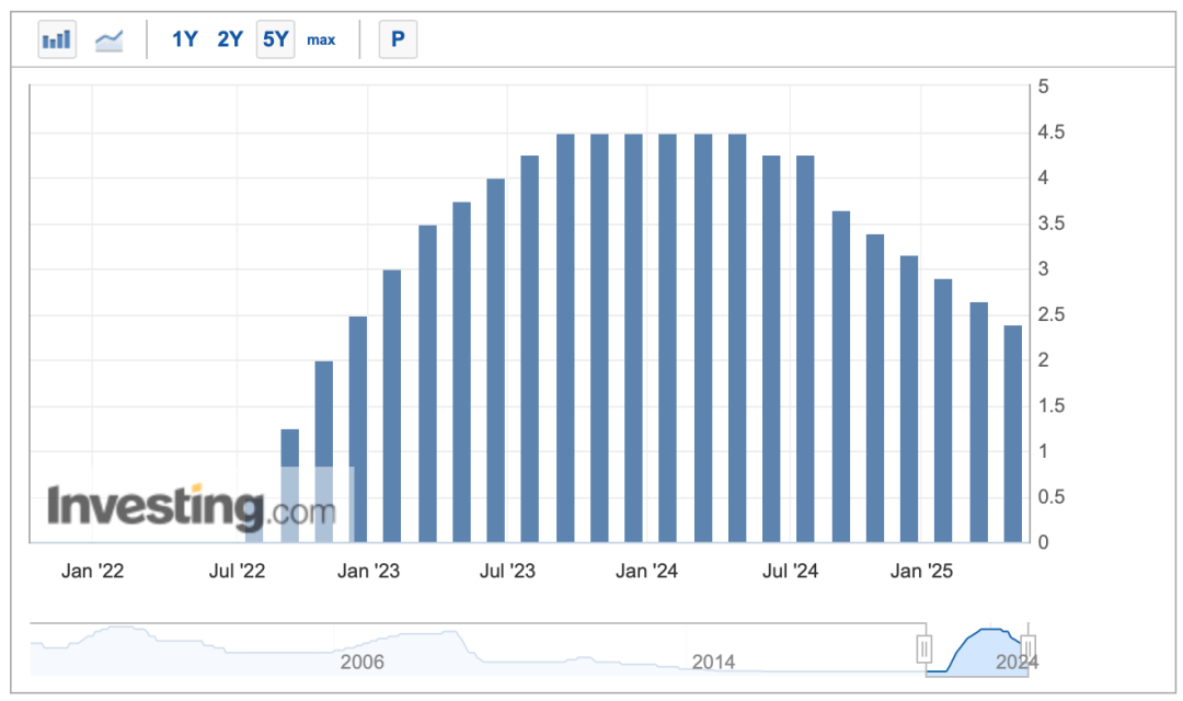 交易员预计,欧洲央行今年还将再降息55个基点,投资者预测今年欧洲央行将再度下调借贷成本两到三次。