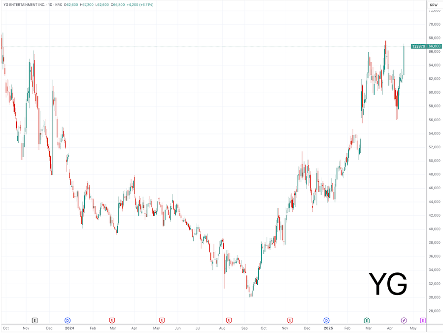 周五收盘,演艺经纪公司YG Entertainment股价涨超6%,创2023年底以来新高;网络漫画制作公司KidariStudio一度暴涨超15%,网络漫画公司Mr Blue Corp.也出现大幅波动。