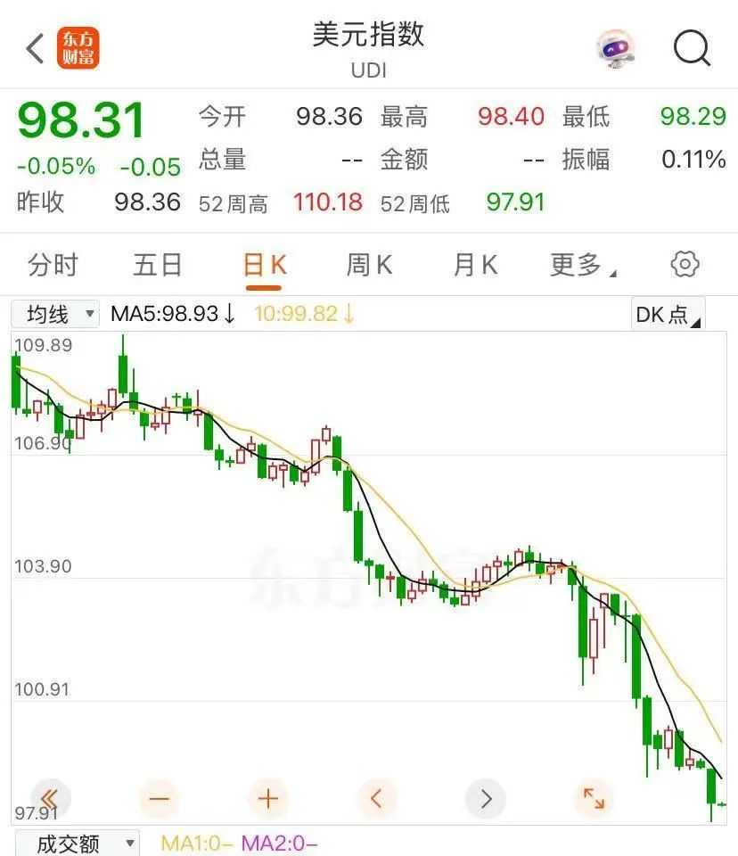 截至收盘,道指跌2.48%,纳指跌2.55%,标普500指数跌2.36%。美元暴跌至去年10月份以来的低点,资金加速流向日元、黄金等避险资产。