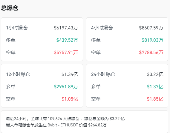 据Coinglass网站数据,过去24小时内有近11万人爆仓。