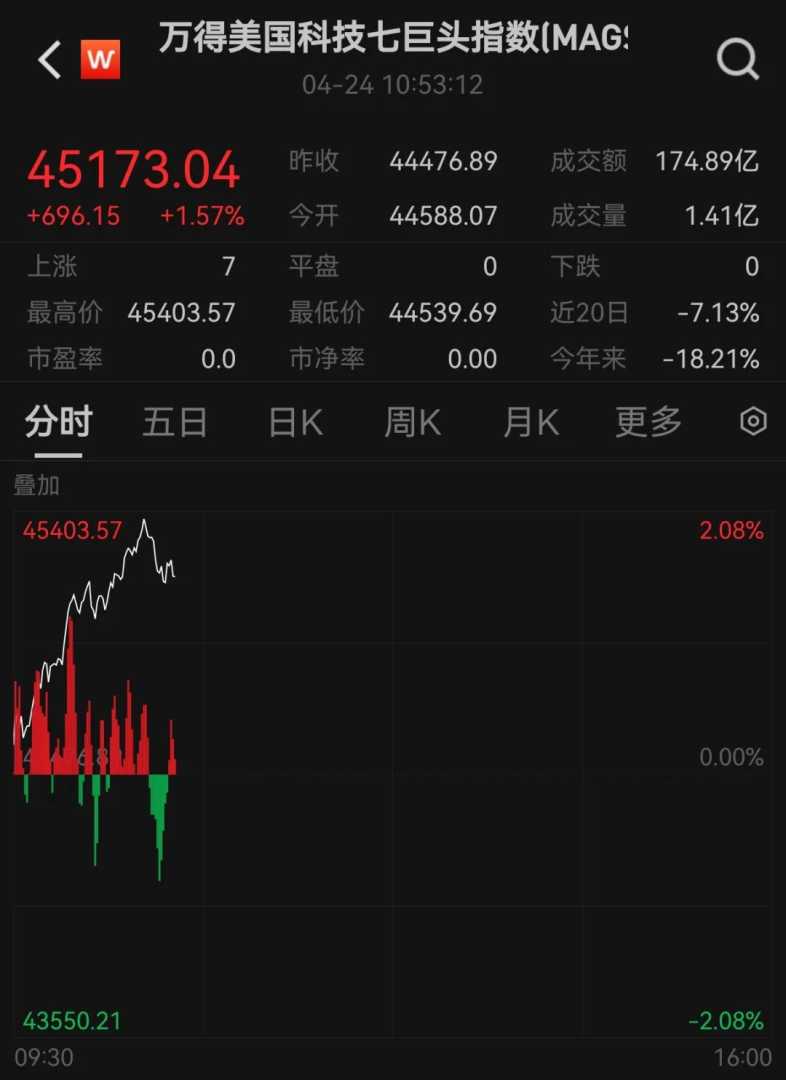 北京时间4月24日晚,美股持续上扬,纳指、标普500指数涨幅均超过1%,大型科技股全线飘红,推动市场气氛。